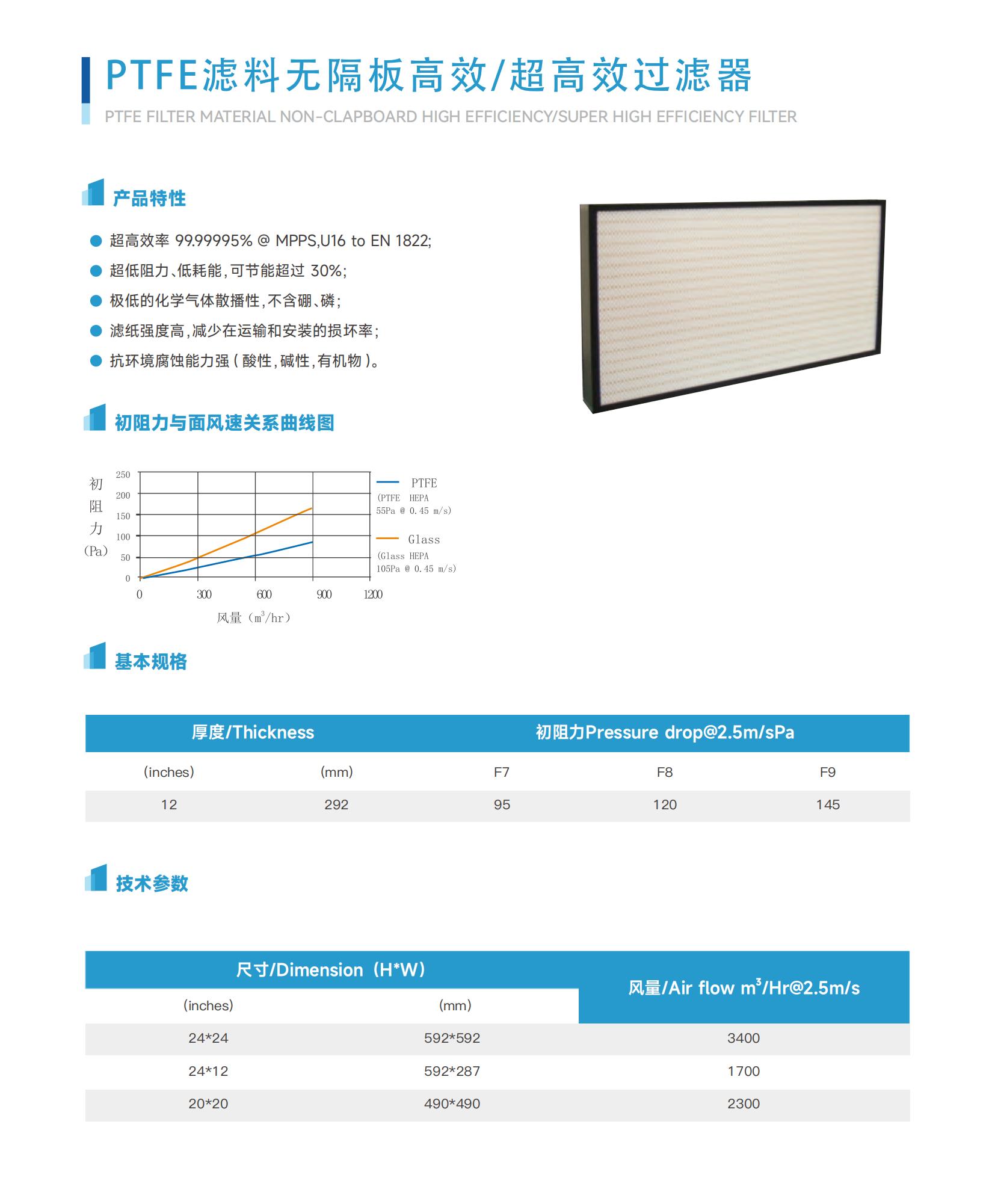 超高效率99.99995%@ MPPS,U16 to EN 1822;