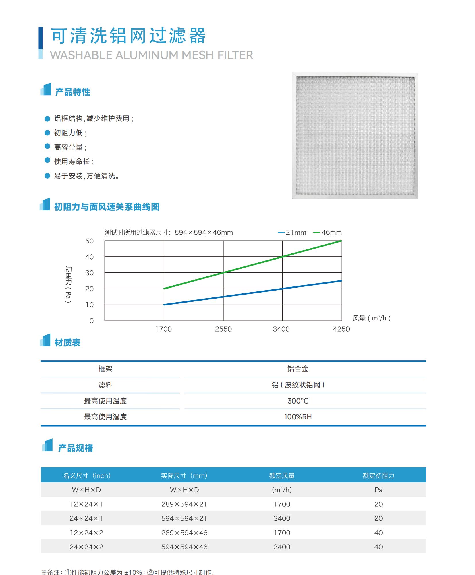 • 可清洗铝网过滤器